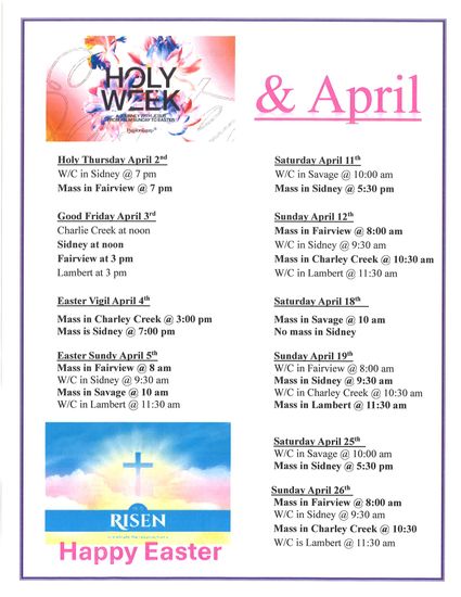 * Not in April - No Daily Mass the week of April 6-10